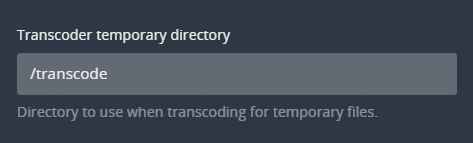 If you run Docker set this to /transcode and map it to /tmp/plex